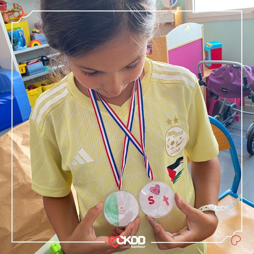 Avec l’aide de nos bénévoles Lina et Sylvie, les jeunes patients ont réalisé des créations inspirées par le grand événement sportif de l’année. Merci à tous les participants, ainsi qu’à nos bénévoles pour leur créativité et leur enthousiasme