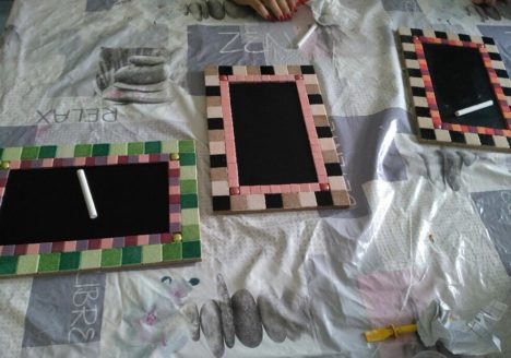 Le 1er juin, à l’hôpital de Poissy (78) : Atelier création d’une oeuvre en mosaïque faite par les enfants.