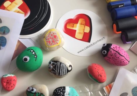 Avec l’aide de notre bénévole bordelaise et de l’intervenante Vanessa de Lullubies, les jeunes patients ont pioché parmi plusieurs sources d’inspiration afin de customiser leurs galets.