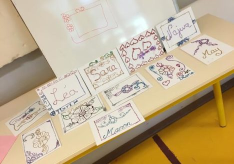 D’abord sur une feuille, puis sur leurs mains et enfin, sur un cadre, les petites filles ont réalisé de magnifiques dessins.