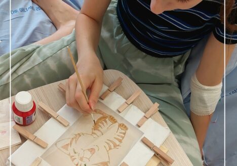 Petite parenthèse enchantée pour nos jeunes patients qui ont eu la chance de faire de la peinture sur soie.