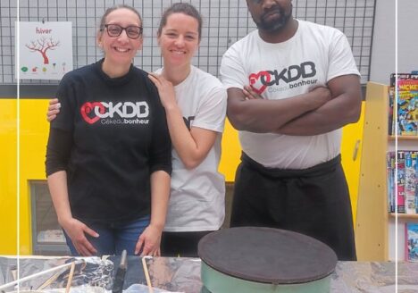 La recette des crêpes CKDB : 1 tasse de sourires, 4 cuillères à soupe d’amour, 2 pincées de patience ! Merci à Tatiana et Alassane pour cet atelier gourmand
