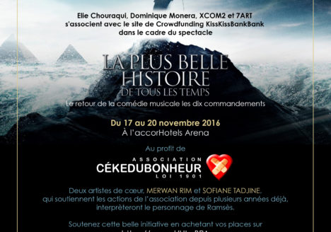 XCOM2 et 7ART, producteurs du spectacle « La plus belle histoire de tous les temps: le retour de la comédie musicale les dix commandements » souhaitent aider l’association CéKeDuBonheur en faisant profiter ses généreux…