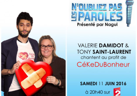 Le 11 juin, notre marraine Valérie Damidot et l’humoriste Tony Saint-Laurent chantaient au profit de CKDB, dans la spéciale « N’oubliez pas les paroles 100 % tube », sur France 2. Une soirée rythmée aux côtés de Nagui au cours de laquelle la somme récoltée a été reversée à l’association.